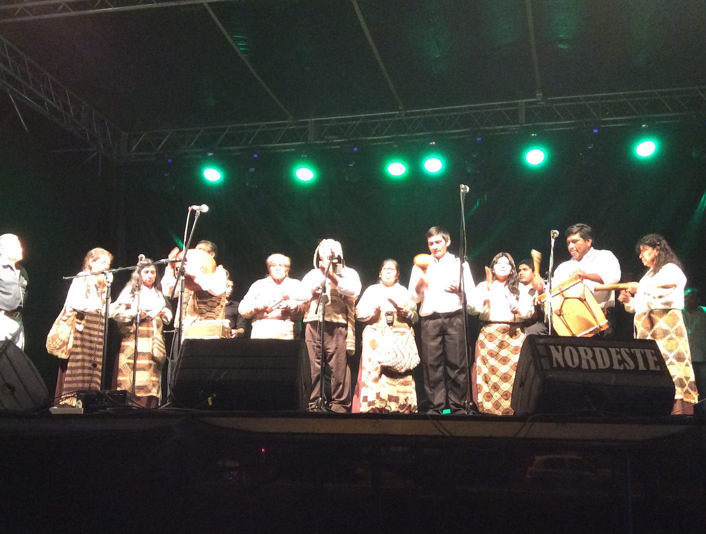 El emblemático Coro Qom Chelaalapi en su actuación de anoche, continuando con su trabajo de 54 años de promoción de la cultura originaria musical del Chaco