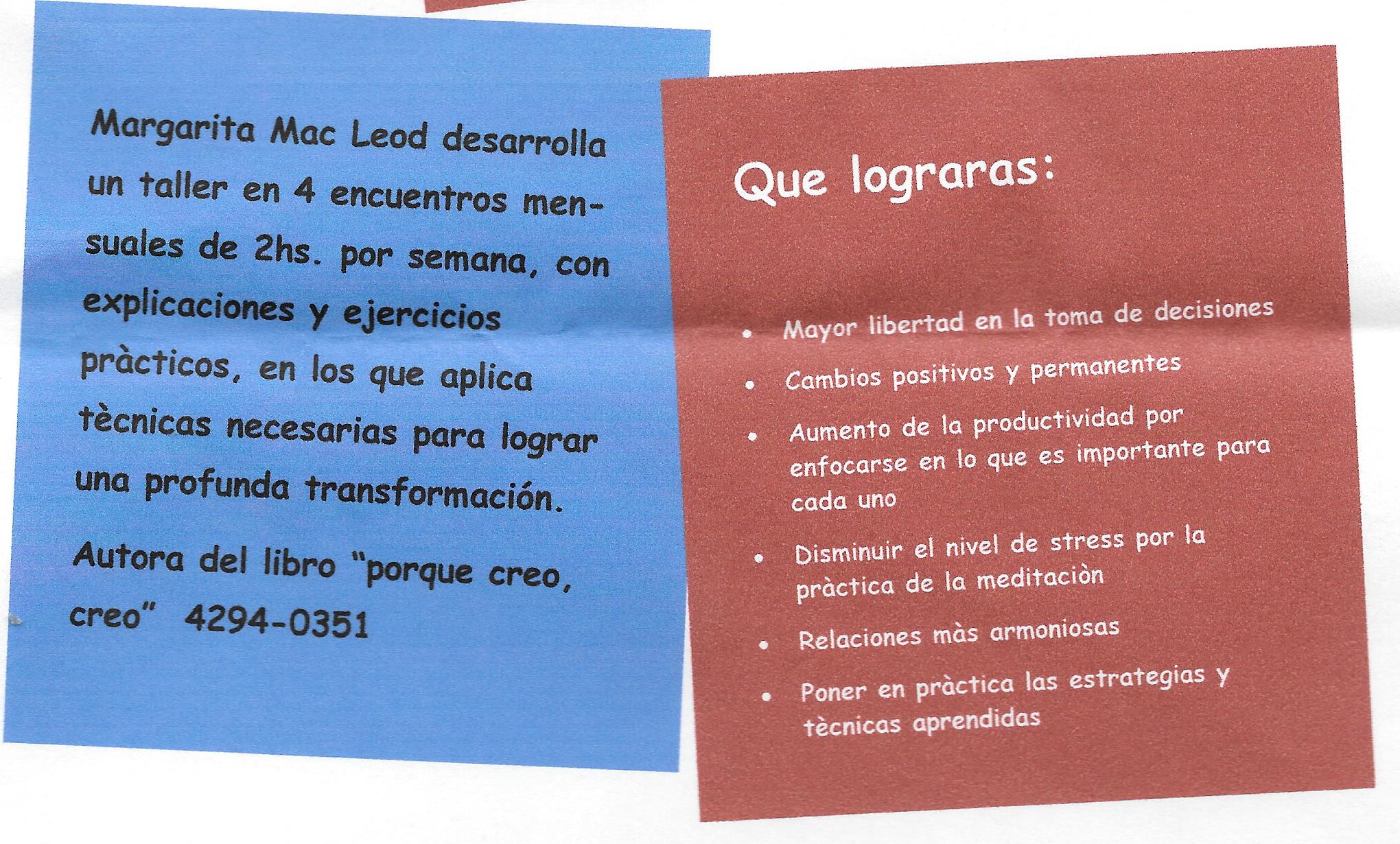 Comienza el 4 de enero, miércoles, de 10 a 12 horas, son 4 clases, y sale $200,- ¡No te lo podés perder!!!