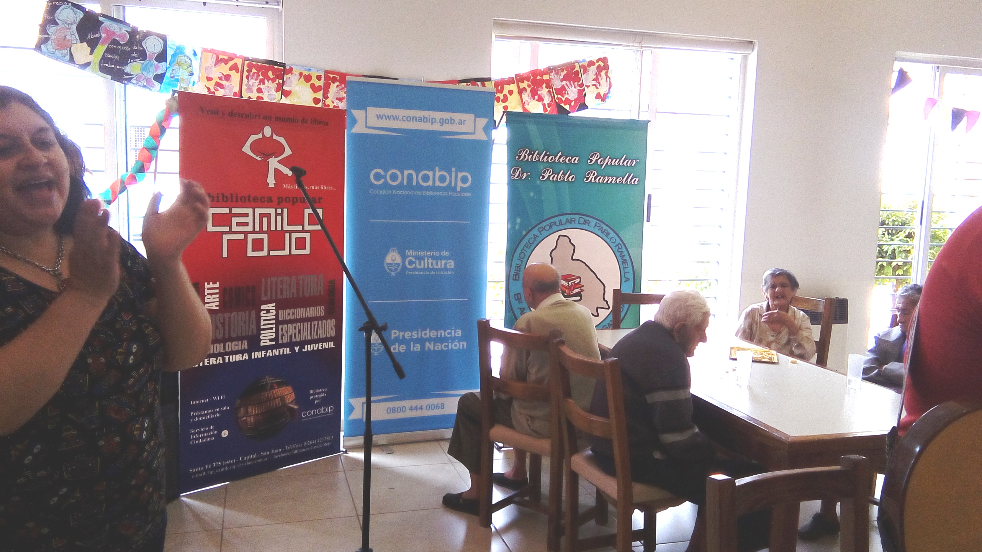 Junto a la Bib. Pop. Camilo Rojo en la Residencia de Adultos Mayores María Eva Duarte de Perón en el departamento Rivadavia.