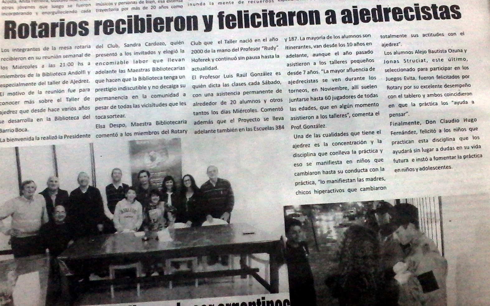 Rotary Internacional reúne a líderes para intercambiar ideas y tomar acciones para mejorar las comunidades del mundo entero. Gracias por el reconocimiento a la Institución, al Profesor que trabaja ad honorem y a los niños y adolescentes que practican el juego-ciencia.