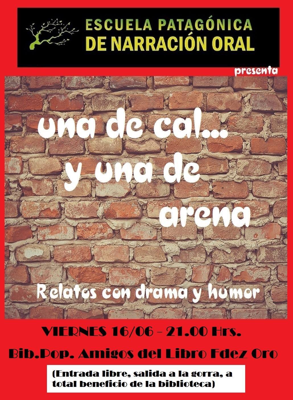 En el marco del DÍA NACIONAL DEL LIBRO la ESCUELA PATAGÓNICA DE NARRACIÓN ORAL nos visita. Viernes 16 de junio, 21 hs. ENTRADA GRATUITA y SALIDA A LA GORRA a beneficio de la biblioteca. L@s esperamos