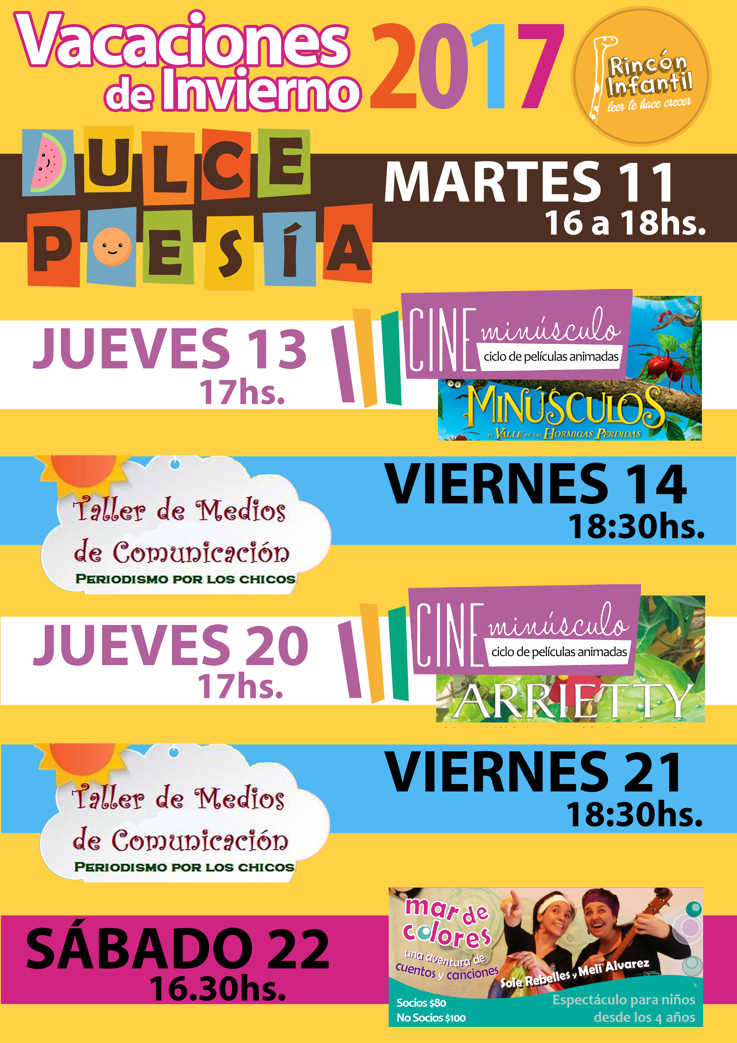 MARTES 11 de JULIO de 16 a 18 horas: "Dulce Poesía" Taller Literario-Gastronómico - Se invitará a los niños a hacer dulce y descubrir de la mano de la poesía la potencialidad poética de las frutas, a través de todos los sentidos. Para niños a partir de 7 años - CON INSCRIPCIÓN PREVIA -