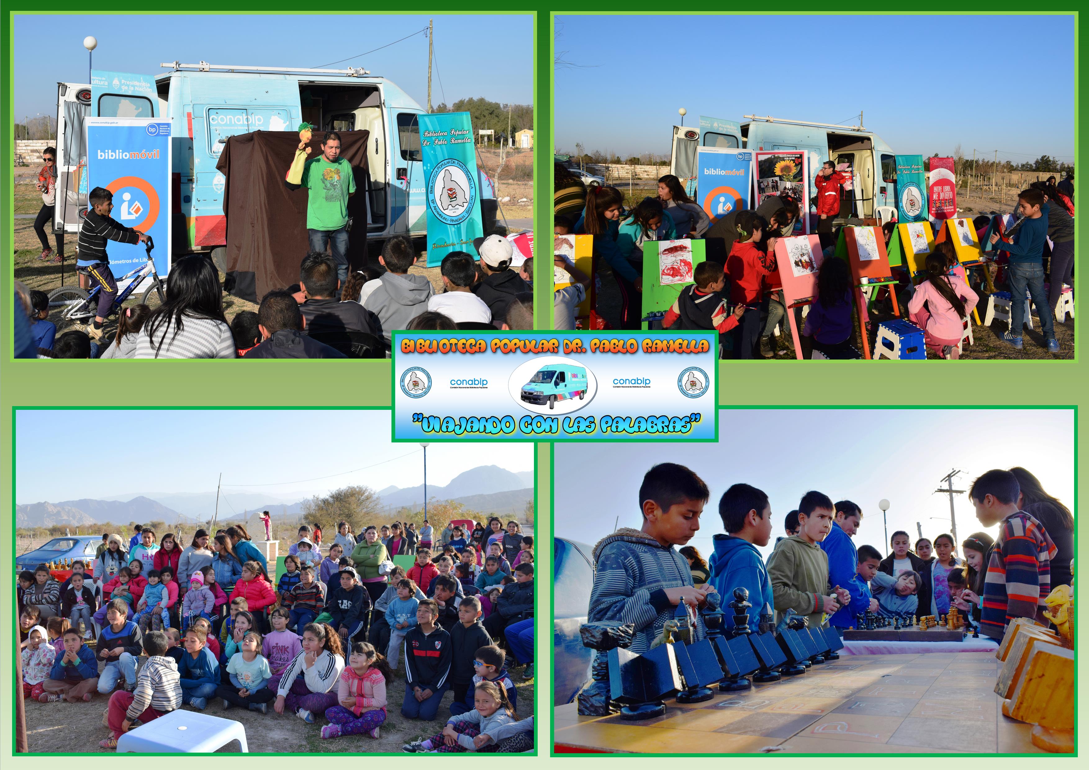 La Biblioteca Dr. Pablo Ramella con el bibliomóvil de CONABIP llegaron hasta la Villa Aurora en el Departamento Ullum, para llevar a cabo actividades culturales y recreativas conjuntamente con la Bib. Pop. Luis Solera y la Dirección de Bibliotecas Populares de San Juan.