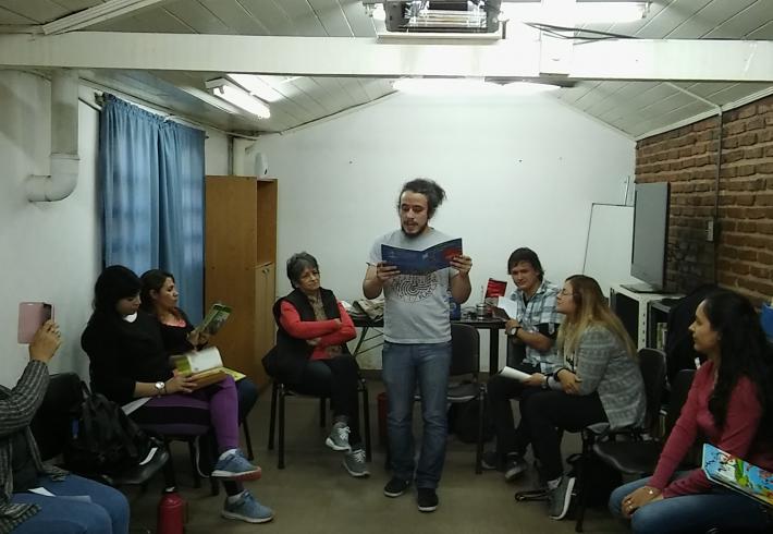 Taller de Narración oral organizado por Secretaría de Cultura, Turismo y Deportes. Subsecretaría de Cultura e Identidad Local, destinado al equipo de extensión bibliotecario. Talleristas Grupo de Narradores Independientes "Viento Norte" - Resistencia - Chaco