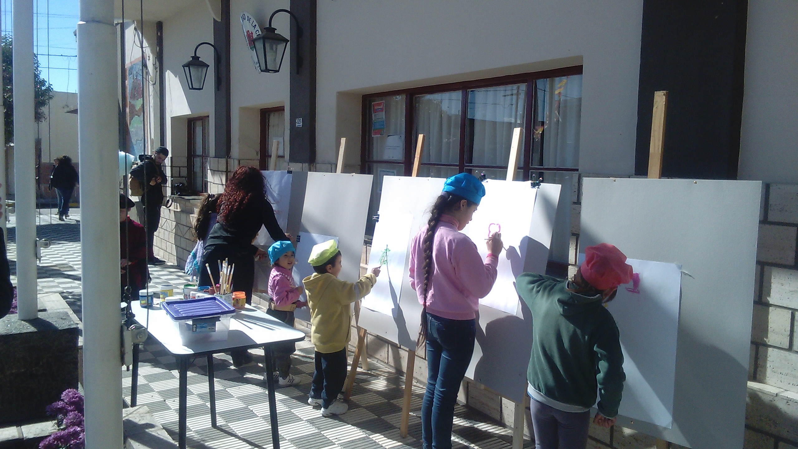 los niños realizan taller de pintura con la conducción de la Profesora en artes plásticas y miembro de la Comisión Directiva Silvana Reynoso