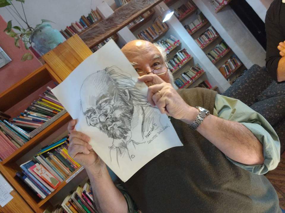 En la presentación hubo dibujantes, docentes, amigxs, vecinxs y el hijo de uno de los fundadores de la mítica revista Hortensia. En un momento de las conversaciones Juan se paró con esa humildad que lo caracteriza y pidió un plauso para Mariano Cognini, para su "viejo" porque esa revista "sí que hizo punta en esto de reinventar el humor gráfico"