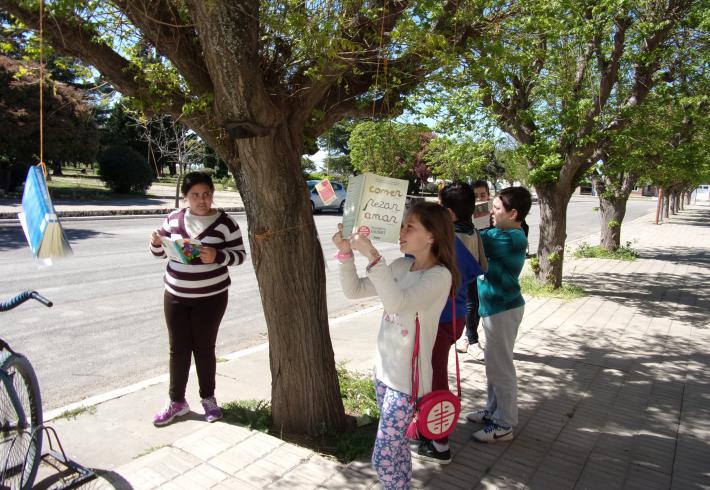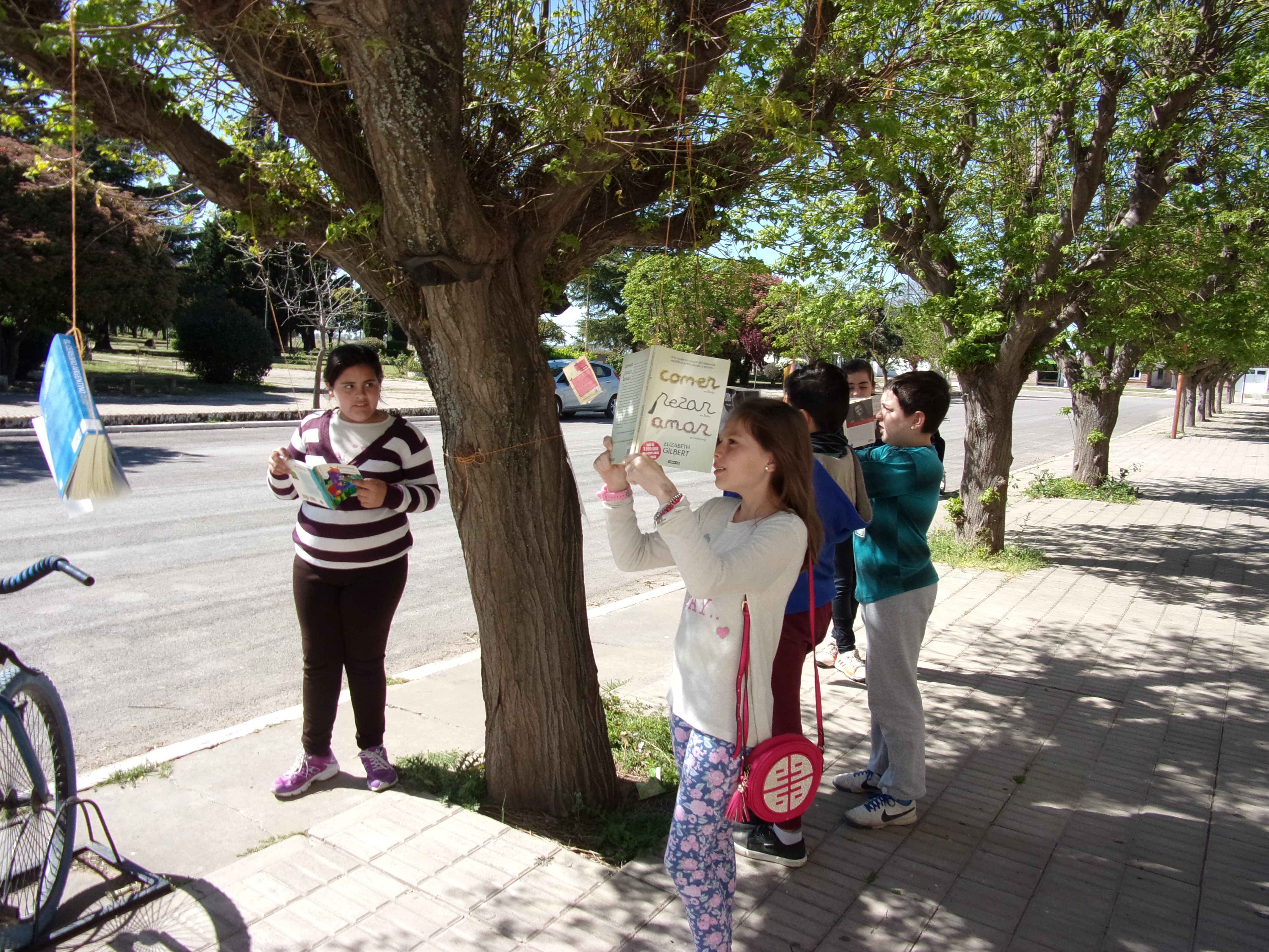 Tambien se disfrutó de un árbol en la vereda de la biblioteca lleno de libros , que brindaba lectura y entretenimiento a todos los traseuntes.