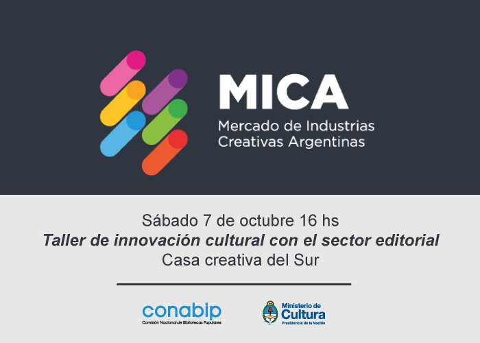 La CONABIP formará parte del MICA a través de un taller de innovación cultural con el sector editorial en la Casa Creativa del Sur, el próximo sábado 07 de octubre a las 16 hrs. La temática del taller serán las "Nuevas audiencias" pensando en el acceso de los jóvenes a la lectura. La apertura del Taller estará a cargo de Gonzalo Oyarzún del Sistema Nacional de Bibliotecas Públicas de Chile. Por su parte, las bibliotecas populares Mariano Moreno de la provincia de La Rioja y Sarmiento de Santa Fé compartirán sus proyectos de promoción de la lectura. En representación de la CONABIP participarán el vocal Javier Areco, María Olives, de la Unidad del Libro y la Lectura y José Taurel, de la Unidad de Servicios Bibliotecológicos. Habrá además trabajos grupales, exposiciones de ideas y la elaboración colectiva de las conclusiones de la jornada.