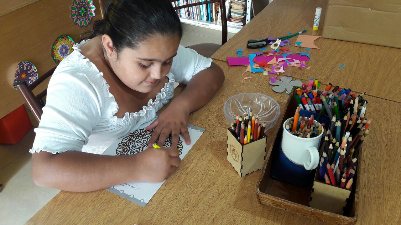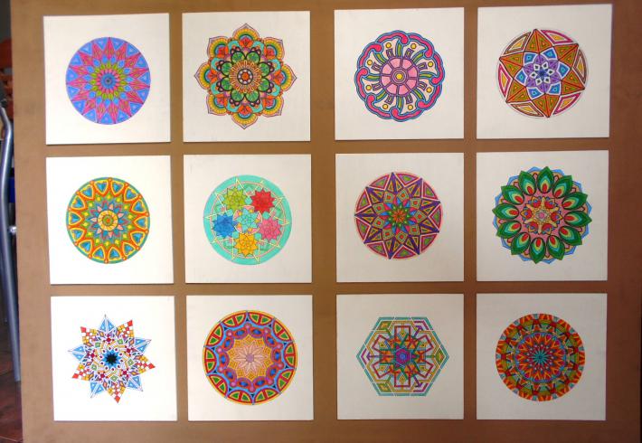 Un clásico de la Biblioteca son las tardes de mandalas, encuentran en la misma un espacio de relajación, de tranquilidad, luego cada mandala es pegado en el techo de la Biblioteca.