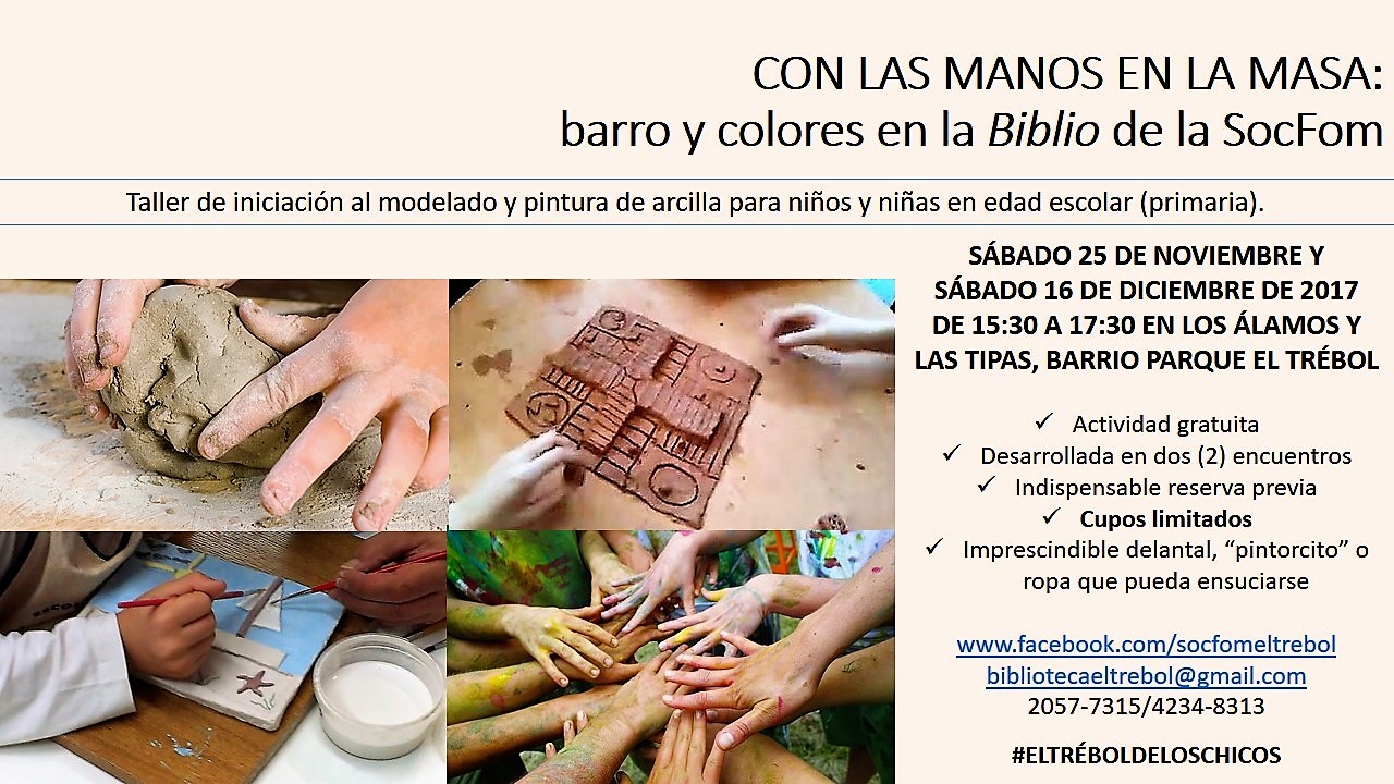 Barro y colores en el taller de iniciación al modelado y pintura de arcilla. BP 4357, Barrio Parque El Trébol, Provincia de Buenos Aires