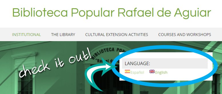 El sitio web de la Biblioteca ahora también en inglés! Hemos subido la información básica por el momento ya que la página está en construcción, pero de ahora en adelante, los contenidos subidos podrán también leerse en inglés. http://biblioaguiar.com/en/