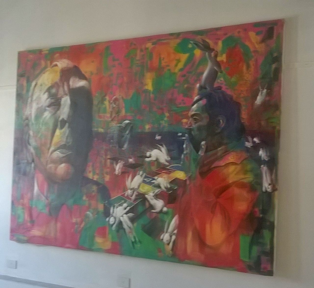 El mural, está hecho sobre lienzo, pintado con pinturas acrílicas. El artista, ofreció hacerlo de esta manera para que el mismo perdure en el tiempo y el sol o el vandalismo no lo arruinen