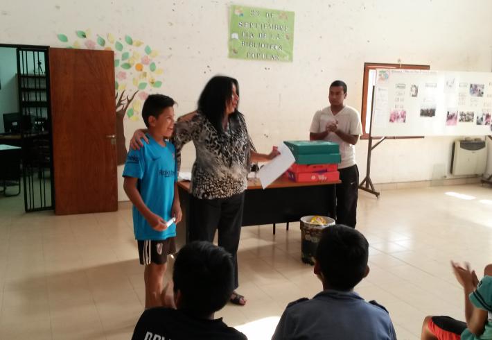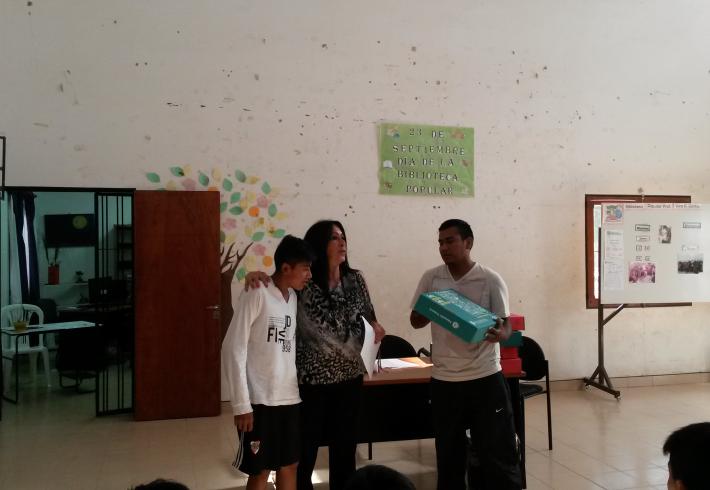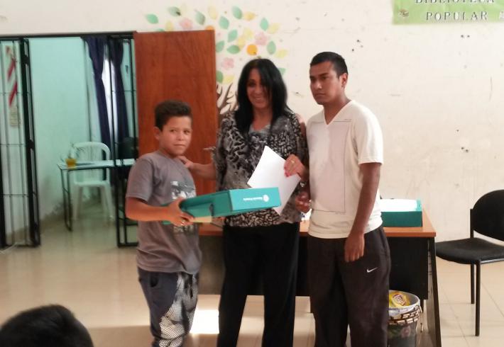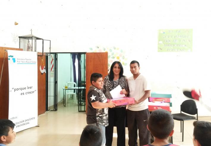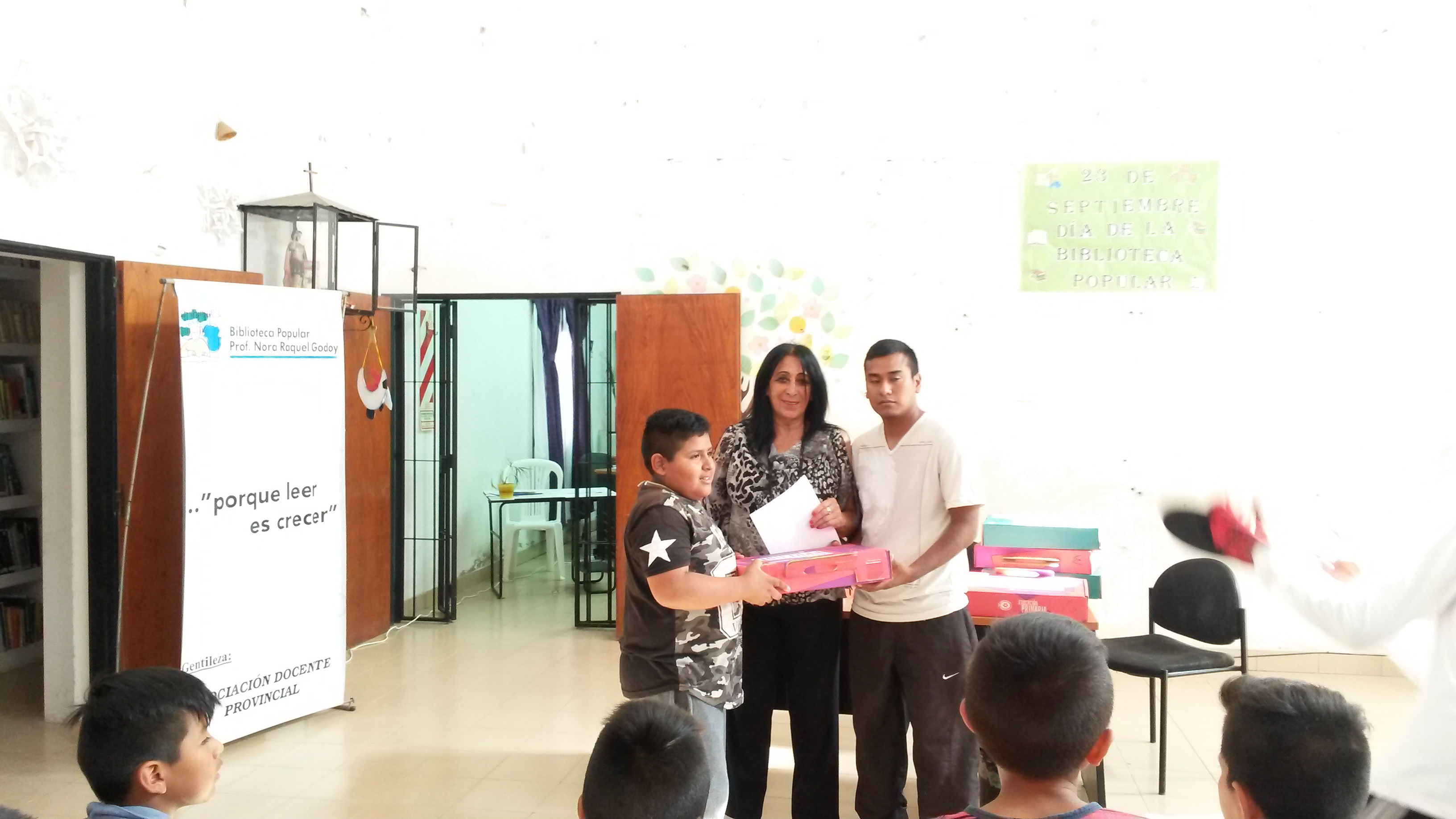 Tras una serie de visitas realizadas por el cuerpo infantil de la Comisaria Nº 17 de Bº Solidaridad .Se entrego kit escolares como agradecimiento por su buen comportamiento como usuarios de la biblioteca .Ademas de resaltar su gusto e interes creciente por los libros .La entrega fue realizada por la presidente de la Institucion , la profesora Nena Reynoso y el instructor el agente Facundo Moreno.