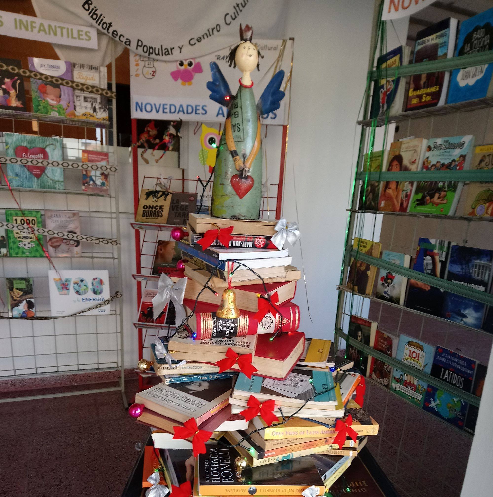Estábamos por armar nuestro pequeño arbolito, pero una lectora nos sugirió uno hecho de libros, empezamos a ver como y con que lo hacíamos, lo armamos, pusimos los adornitos, y de repente notamos que la punta que teníamos era muy pequeña, ya no podíamos salir a comprar, y en eso viene un peke (7 años) y nos dice "tengo un ángel así de grande, te lo traigo. A los minutos tenías ángel para la punta, y nos encantó.