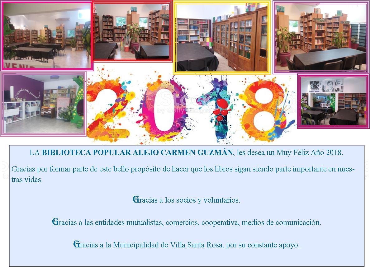 Un año más ha transcurrido, y con el muchos proyectos realizados, gracias al aporte invaluable de "CONABIP" muchas gracias por permitirnos ser parte de este gran proyecto de la lectura. "Feliz 2018"