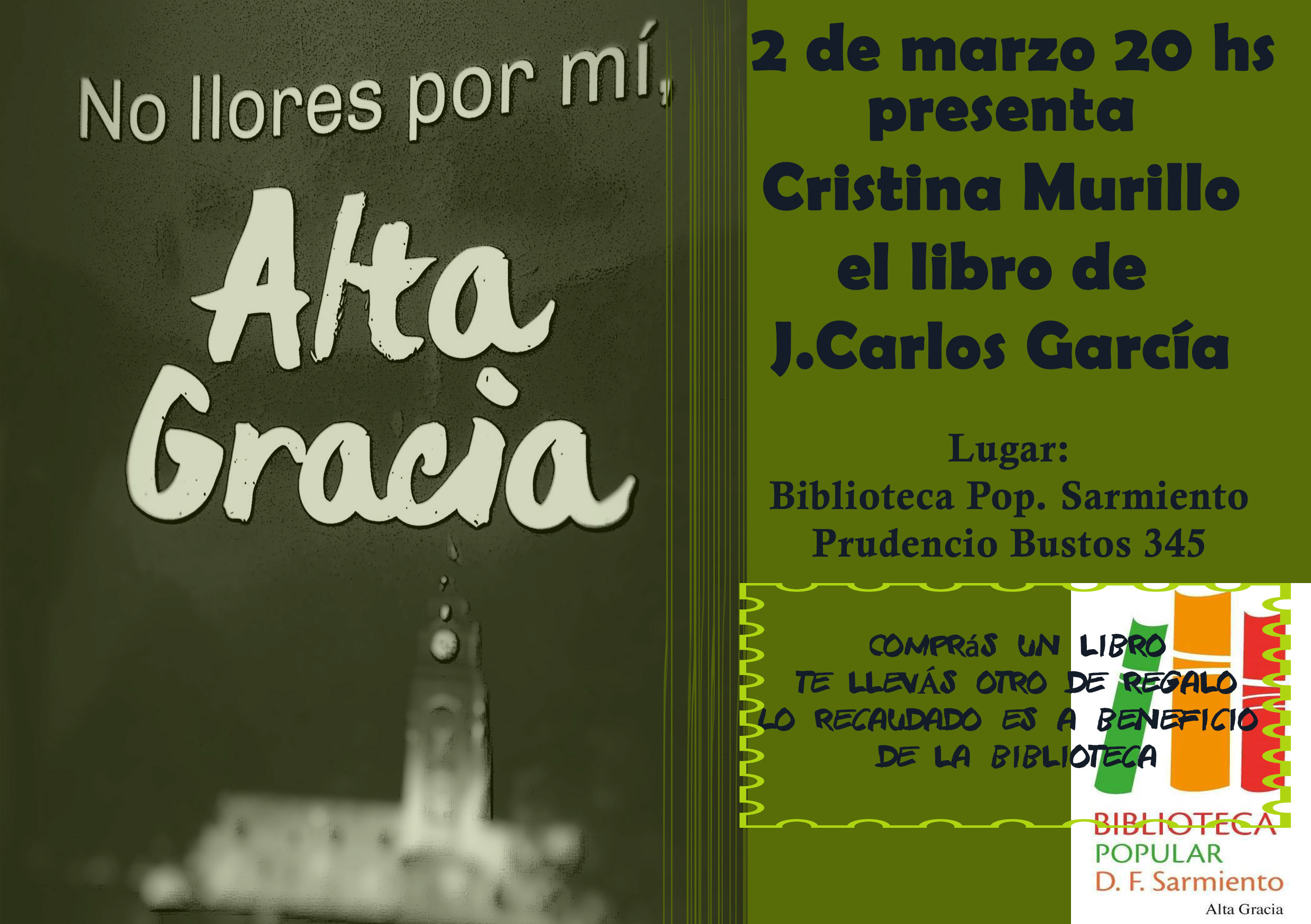 Así comienza “No llores por mí, Alta Gracia” de Juan Carlos García. Amigo, socio e integrante de la Comisión Directiva de la Biblioteca.
