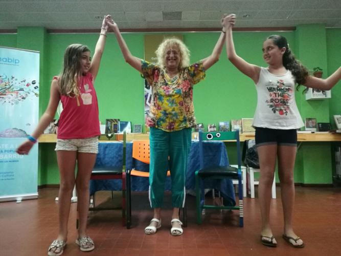 La reconocida autora de libros para chicos, Adela Basch, desarrolló este jueves el taller "Del teatro leído al teatro semimontado", en el marco del Festival "Socios de la lectura" que organiza la CONABIP en distintas bibliotecas populares del pais.