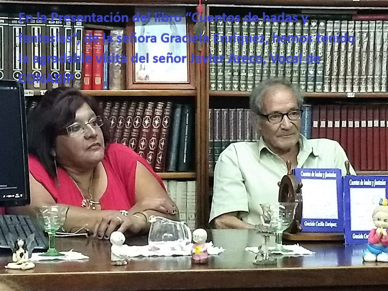 En la Presentación del libro “Cuentos de hadas y fantasías”, de la señora Graciela Enríquez, hemos tenido la agradable visita del señor Javier Areco, Vocal de CONABIP.