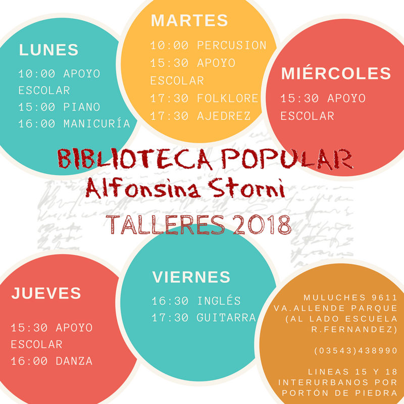 Para este 2018 la Biblio Alfonsina Storni de córdoba tiene muchas propuestas de actividades, talleres y charlas. L@s esperamos!!