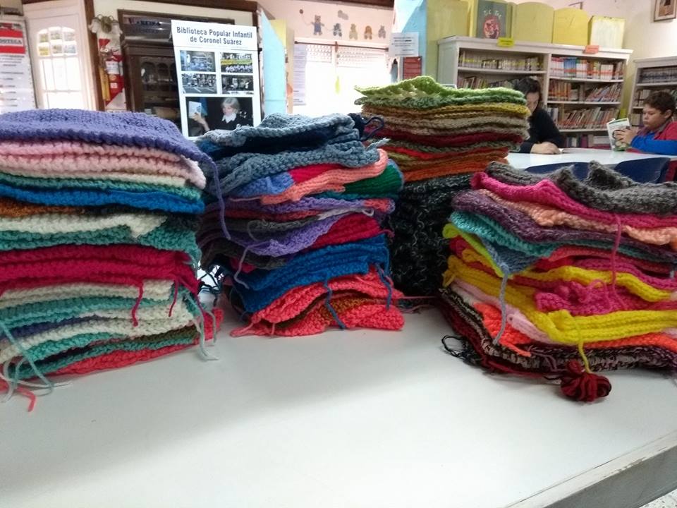 Podes pasar por la Biblioteca Popular Infantil de Coronel Suárez ya están preparadas las bolsas con los cuadraditos para armar las MANTAS QUE ABRAZAN!!