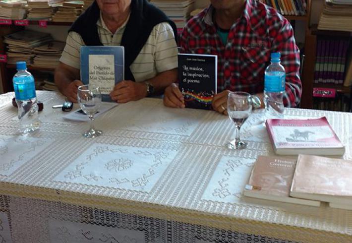 Escritores piranenses junto a personal biliotecario en la 1° feria del Libro del Partido de Mar Chiquita 2016.