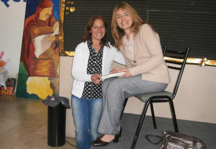 En el Espacio Joven, la escritora Sra. Gloria V. Casañas junto a personal bibliotecario de la Biblioteca Pop."Jose Maria Viglietti" Firma de libros "La maestra de la laguna" uno de los clásicos de la escritora.