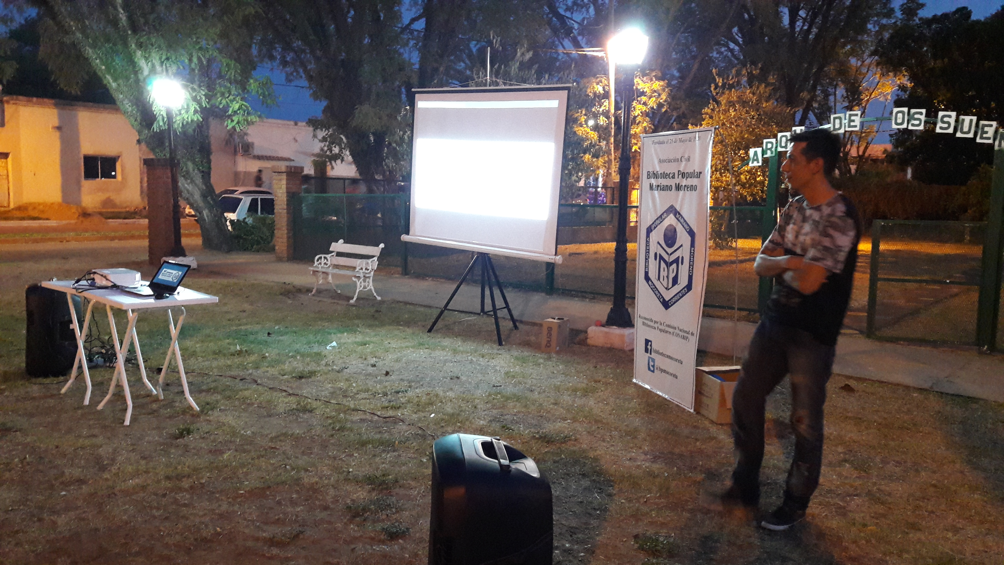 Como parte del proyecto "La Biblio en tu plaza" presentado a Puntos de Cultura, la Biblioteca organizó la proyección de la película "Coco" al aire libre. El Cine al aire libre se realizó frente al Parque de los Sueños de Mocoretá. Agradecemos a Puntos de Cultura por aprobar este proyecto y permitirnos ampliar nuestros recursos y actividades al aire libre, y también a la Municipalidad de Mocoretá por brindarnos la movilidad para trasladar los equipos.