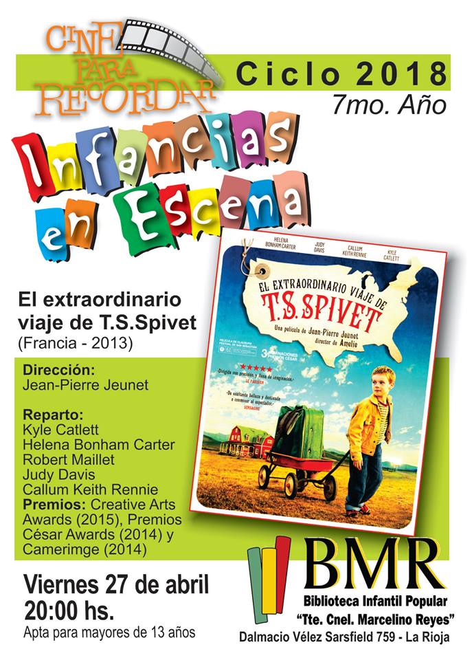 Este mes volvemos a encontrarnos con una nueva propuesta de cine que muestra las infancias en escena. Esta vez con el film "El extraordinario viaje de T.S. Spivet" (2013). Viernes 27 a las 20:00 horas en la biblioteca