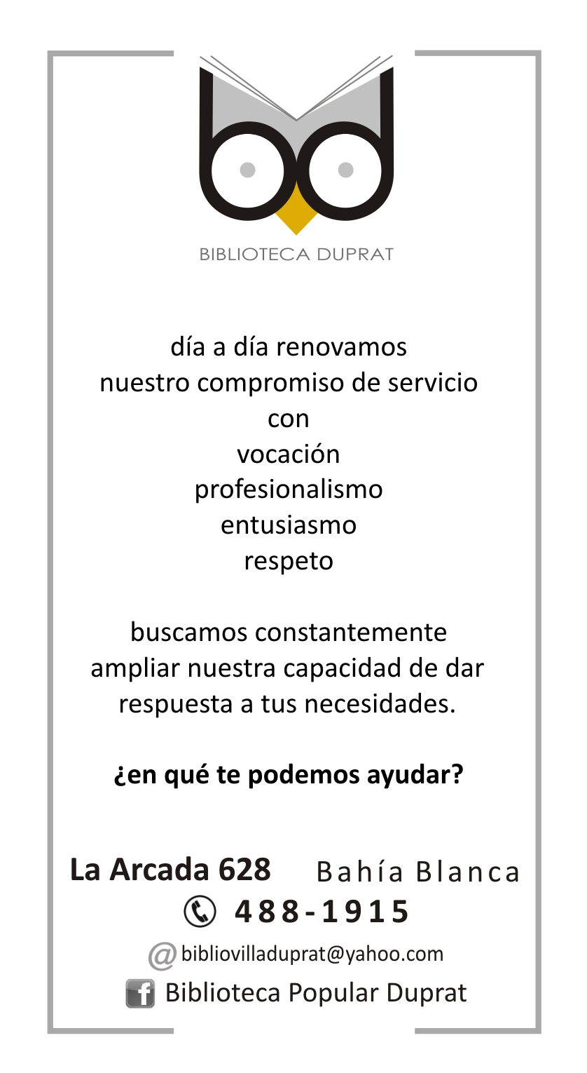 Corregimos nuestro correo: El mismo es biblioduprat@gmail.com