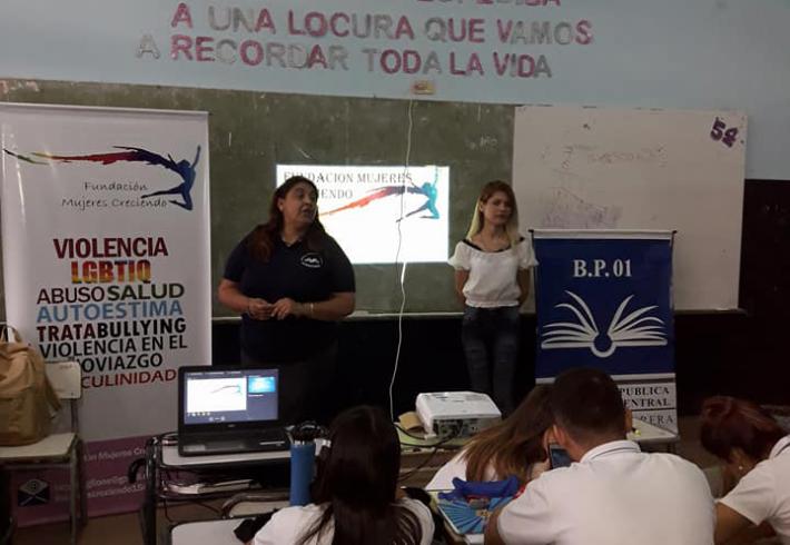 En la semana del 07 al 11 de marzo del corriente, se desarrollo en la Escuela Normal Sarmiento de la ciudad de Resistencia, Chaco, la Feria del Libro "Escuela y Comunidad", en la que participamos con el Bibliomóvil, Animación y Fomento a la Lectura y Talleres simultáneos de Violencia de Género, Violencia en el Noviazgo, Bullying, Trata de Personas.