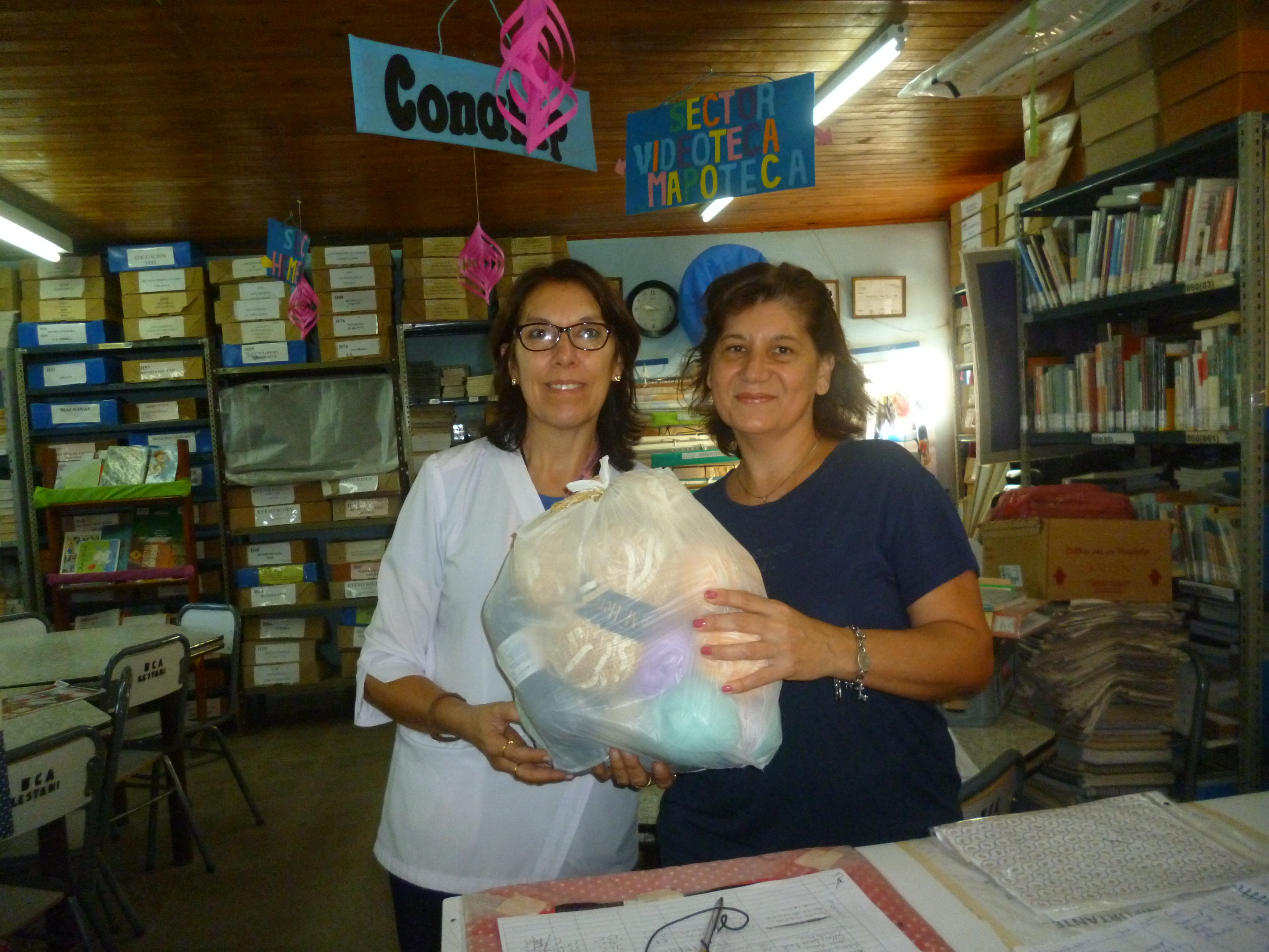 Recibiendo Donación de material para el taller de tejido "Hilando Amistades 2"