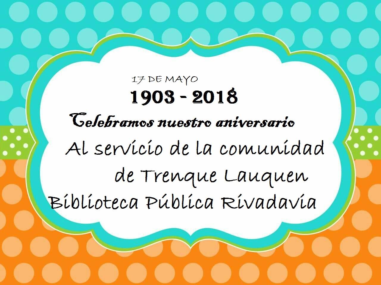 115 años. Aniversario de la Biblioteca Pública Rivadavia 1903-2018